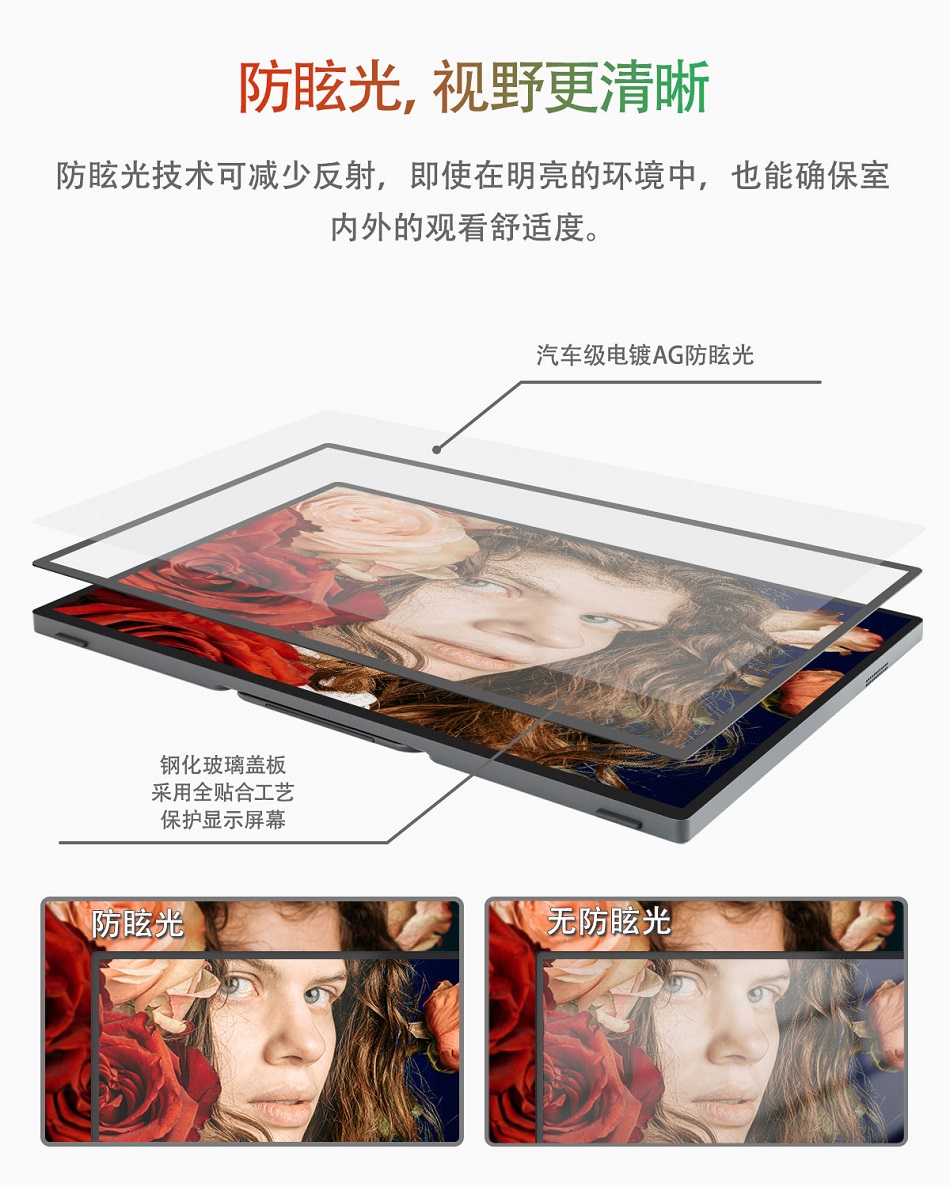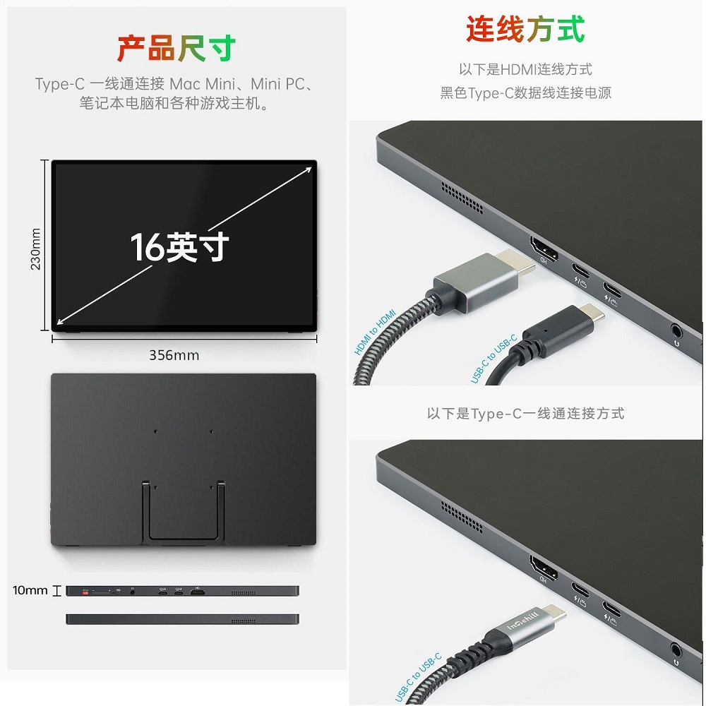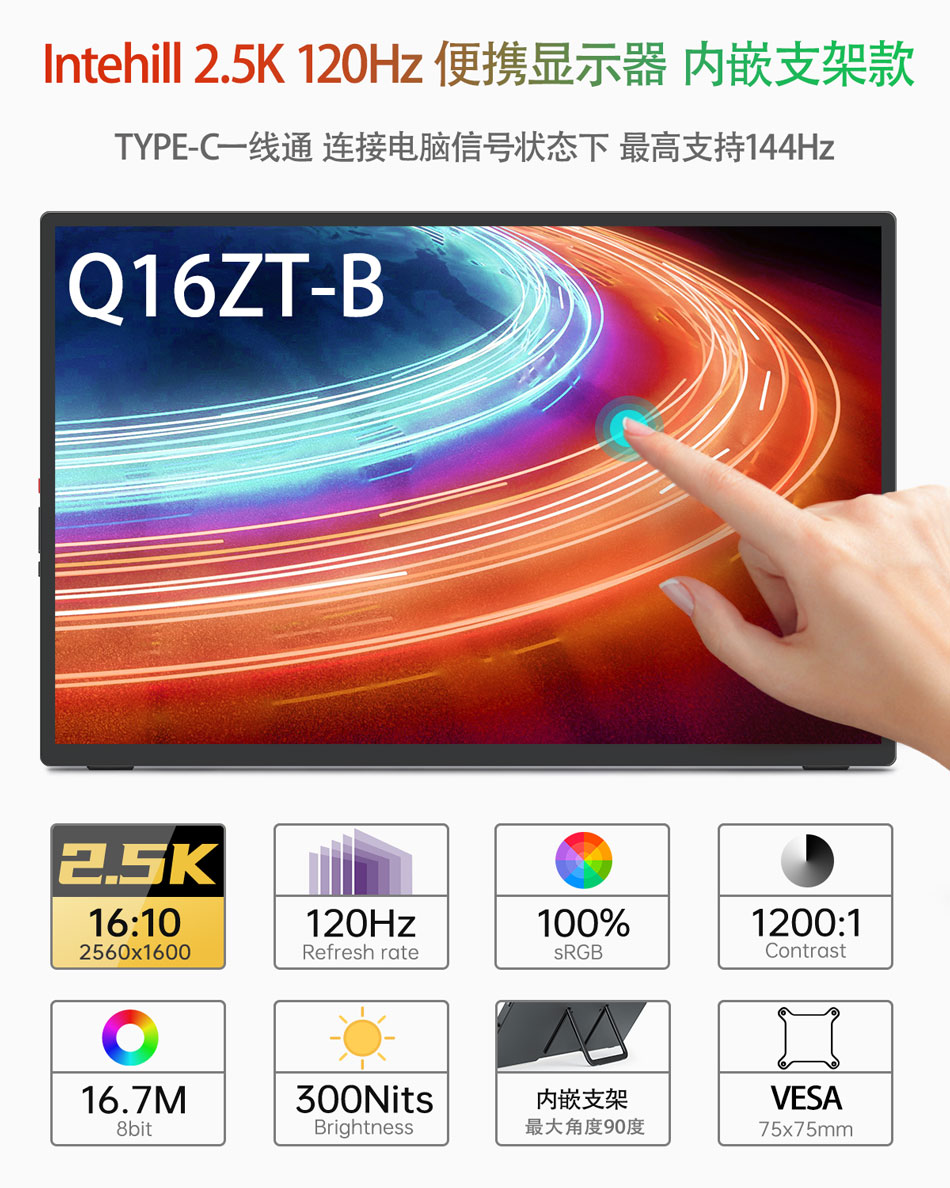 描述:十点触控 防眩光触摸屏 CNC铝合金机身 带隐藏支架 VESA孔位