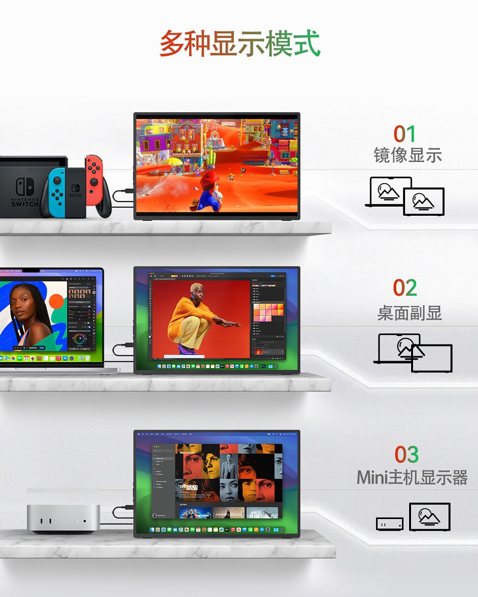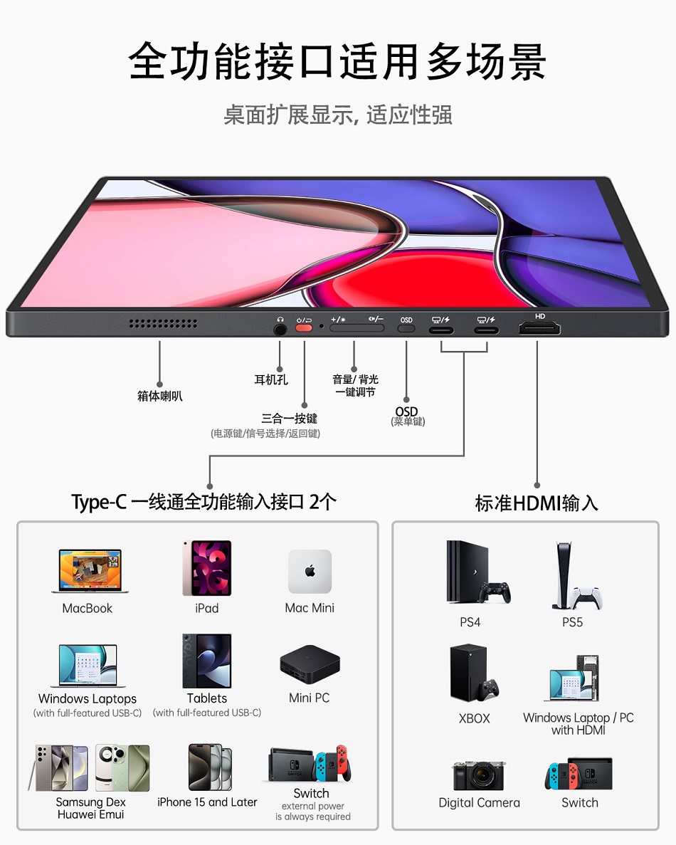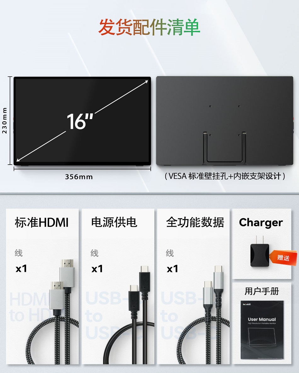描述:十点触控 防眩光触摸屏 CNC铝合金机身 带隐藏支架 VESA孔位