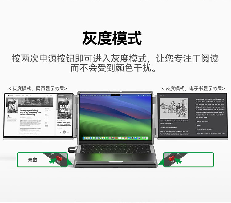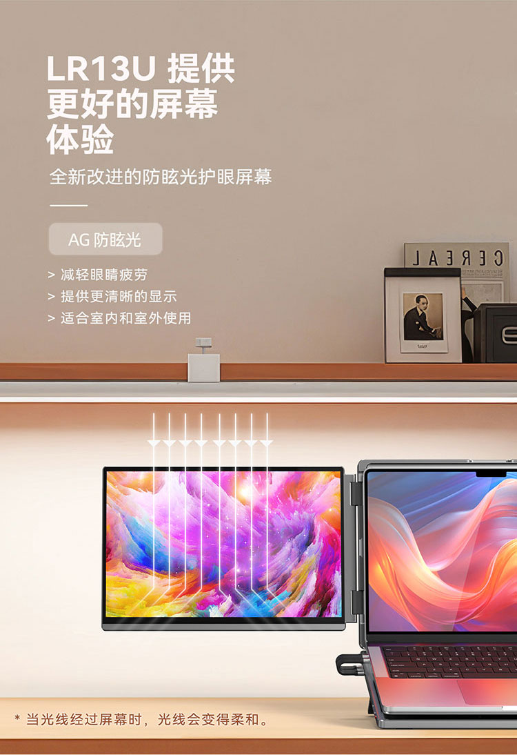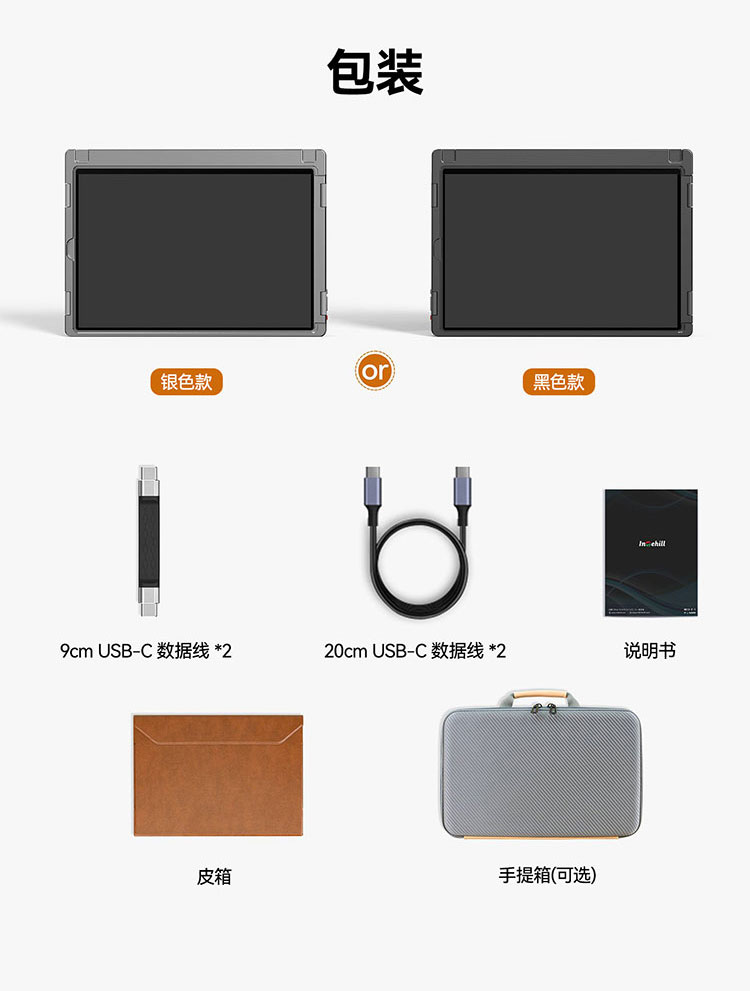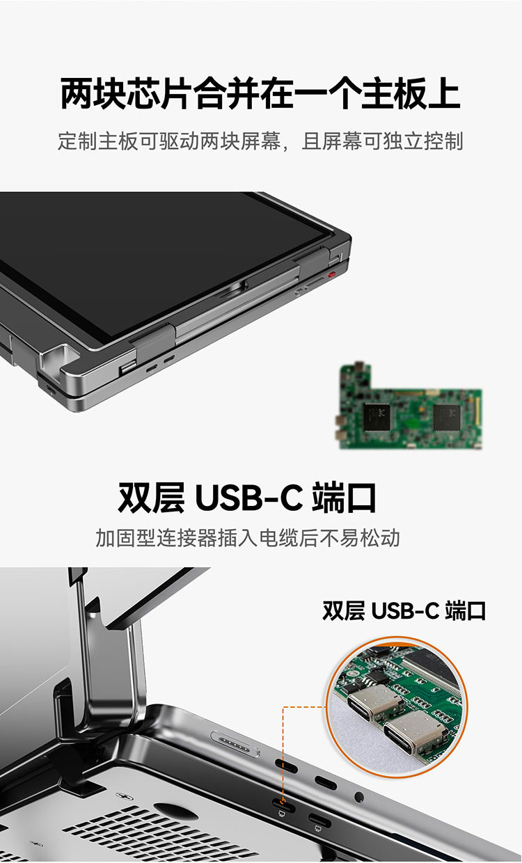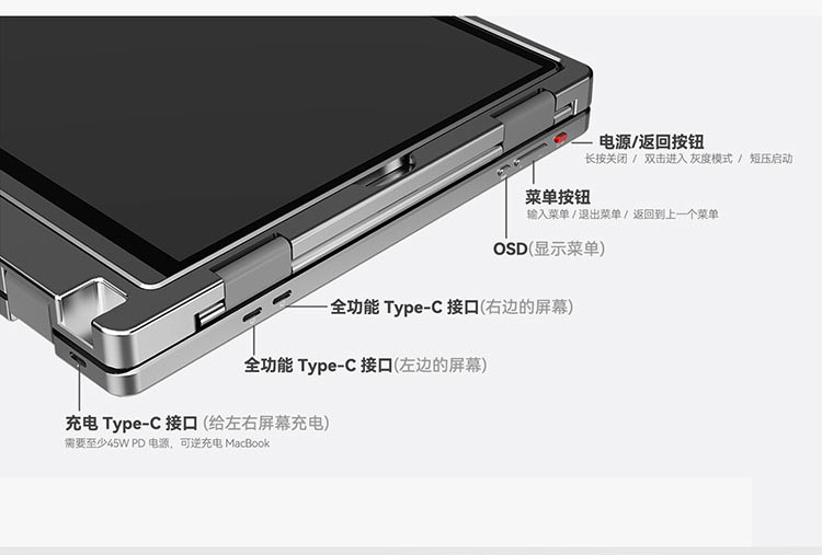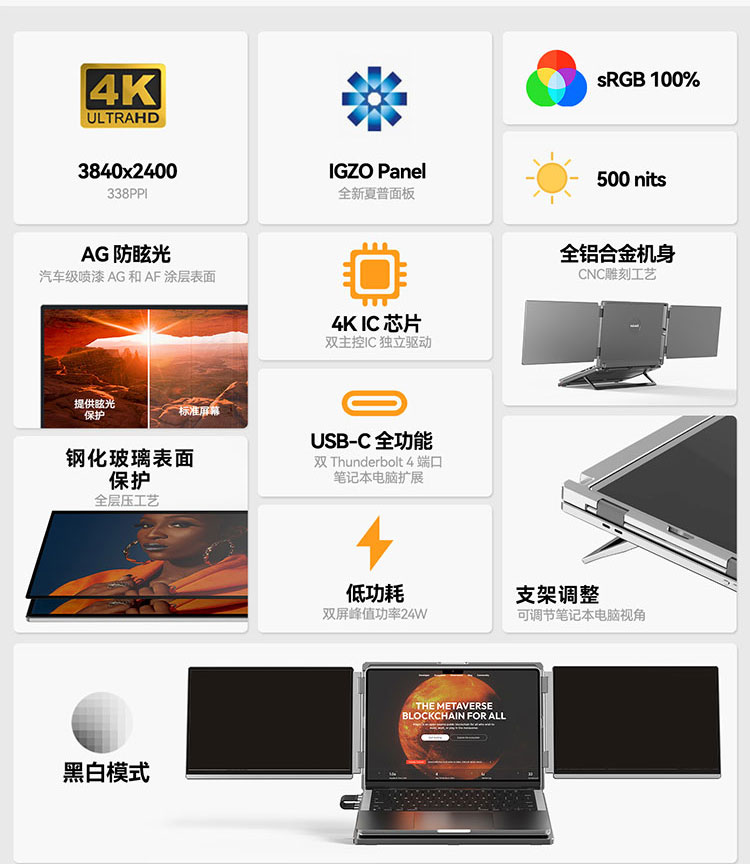 描述:便携式双屏显示器 笔记本扩展双副屏 工作站双4K副屏 带灰阶模式 AG防眩光
