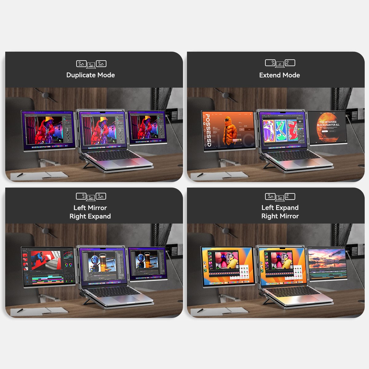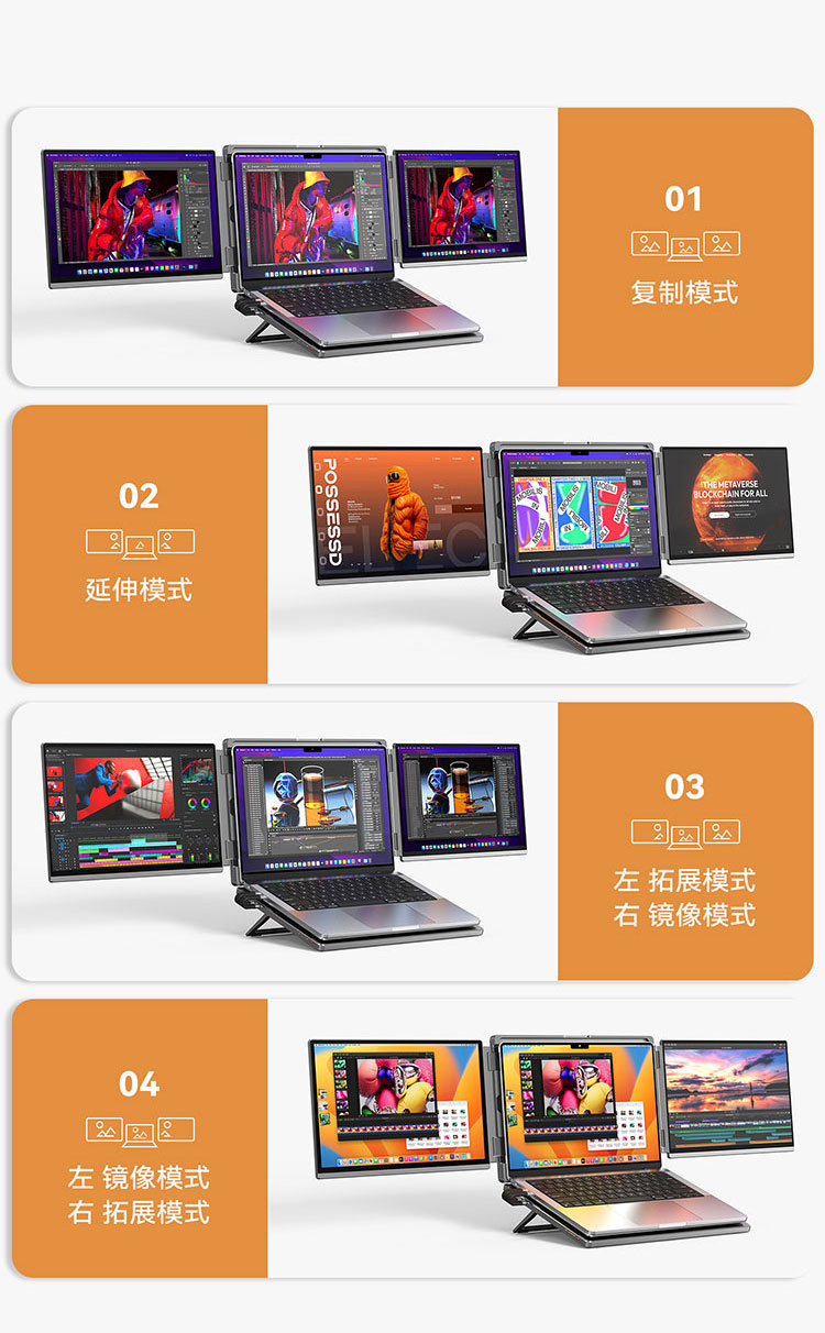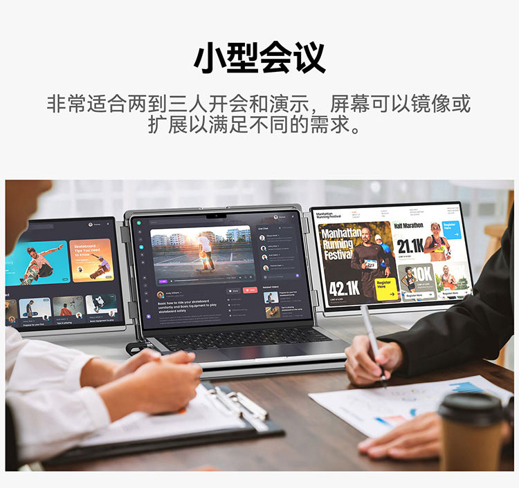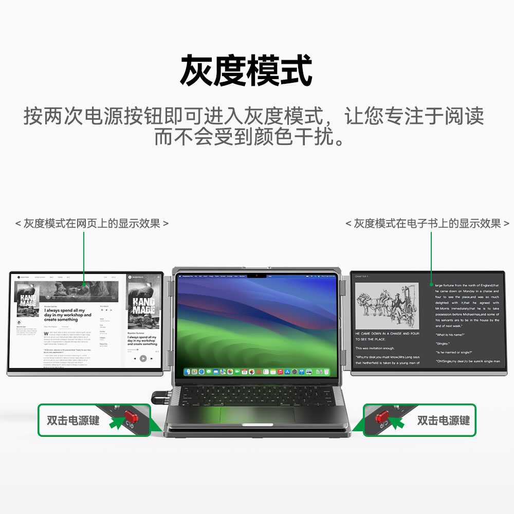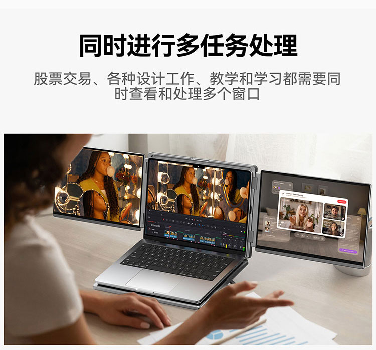 描述:便携式双屏显示器 笔记本扩展双副屏 工作站双4K副屏 带灰阶模式 AG防眩光