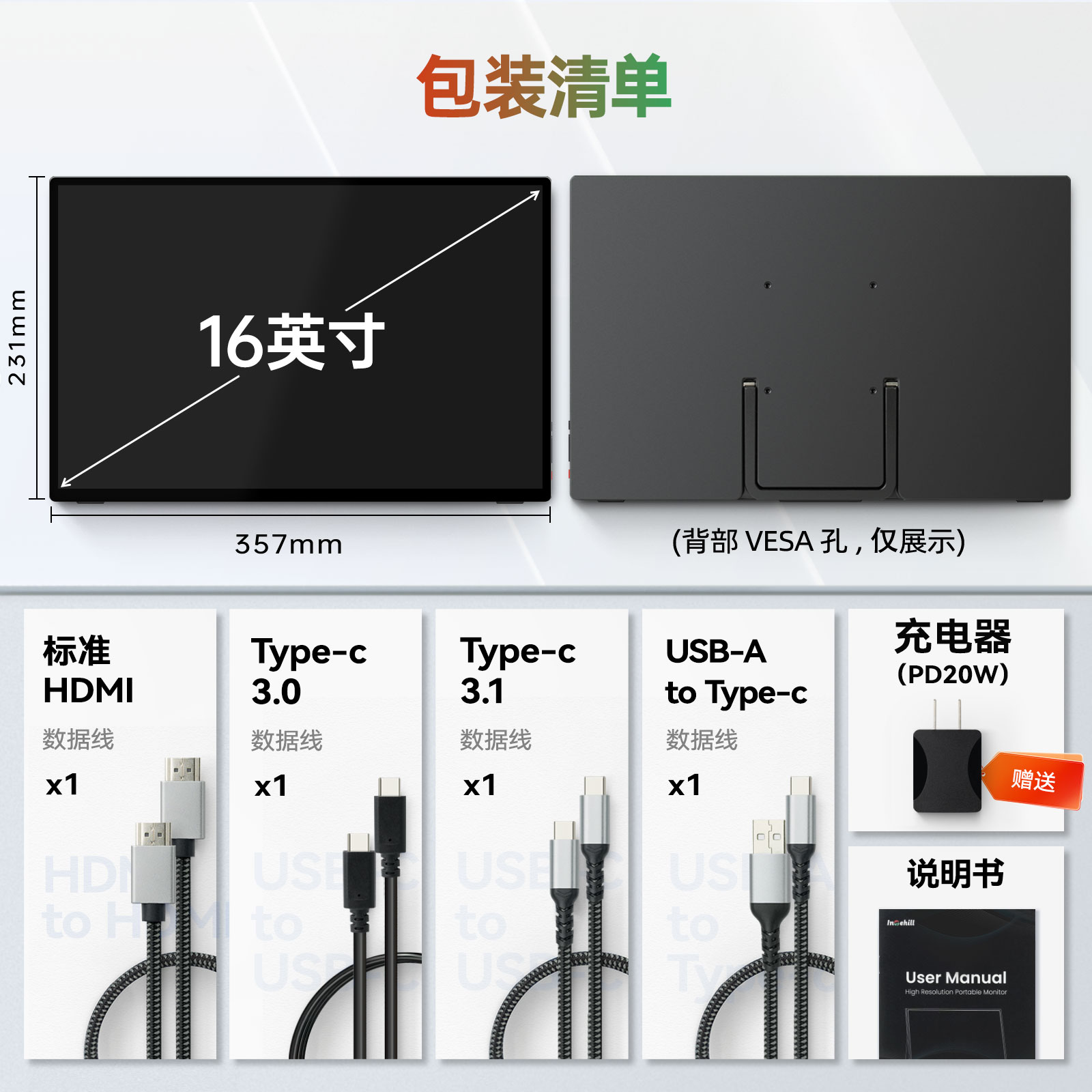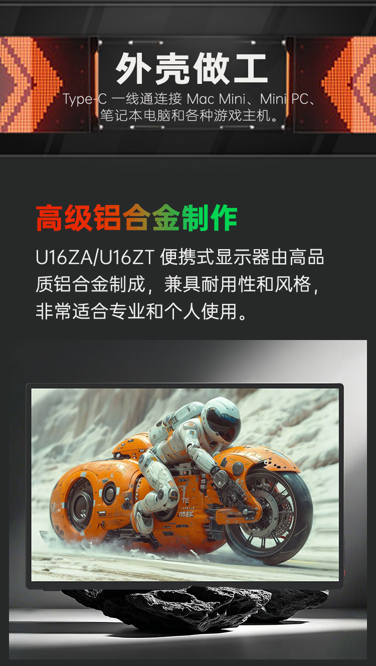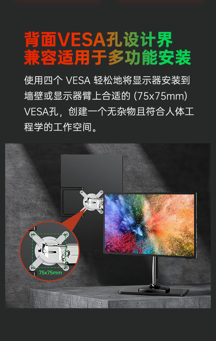 描述:十点触控防眩光 CNC铝合金机身 带隐藏支架 VESA孔位