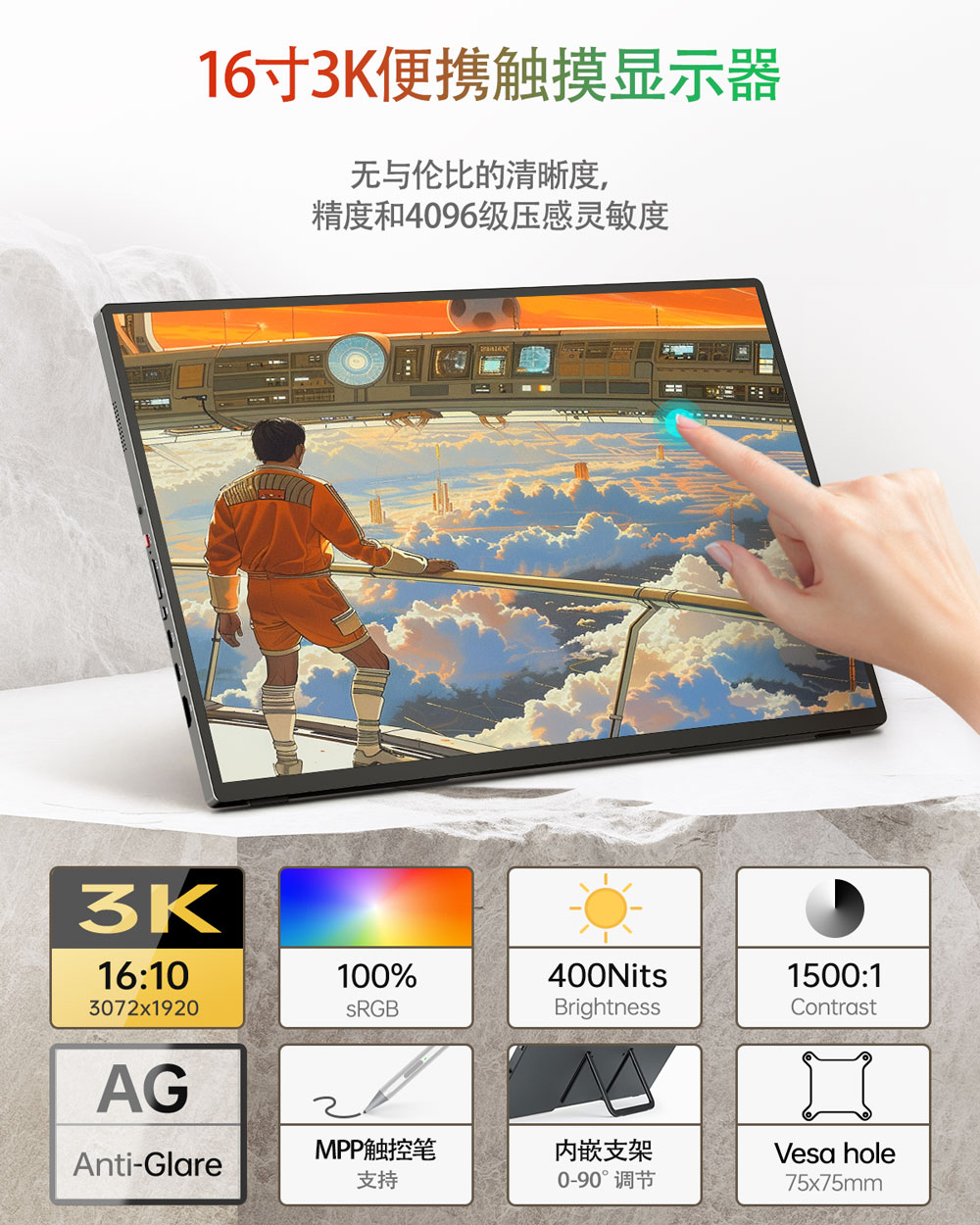 U16ZT-A 16寸3K 触摸显示器
