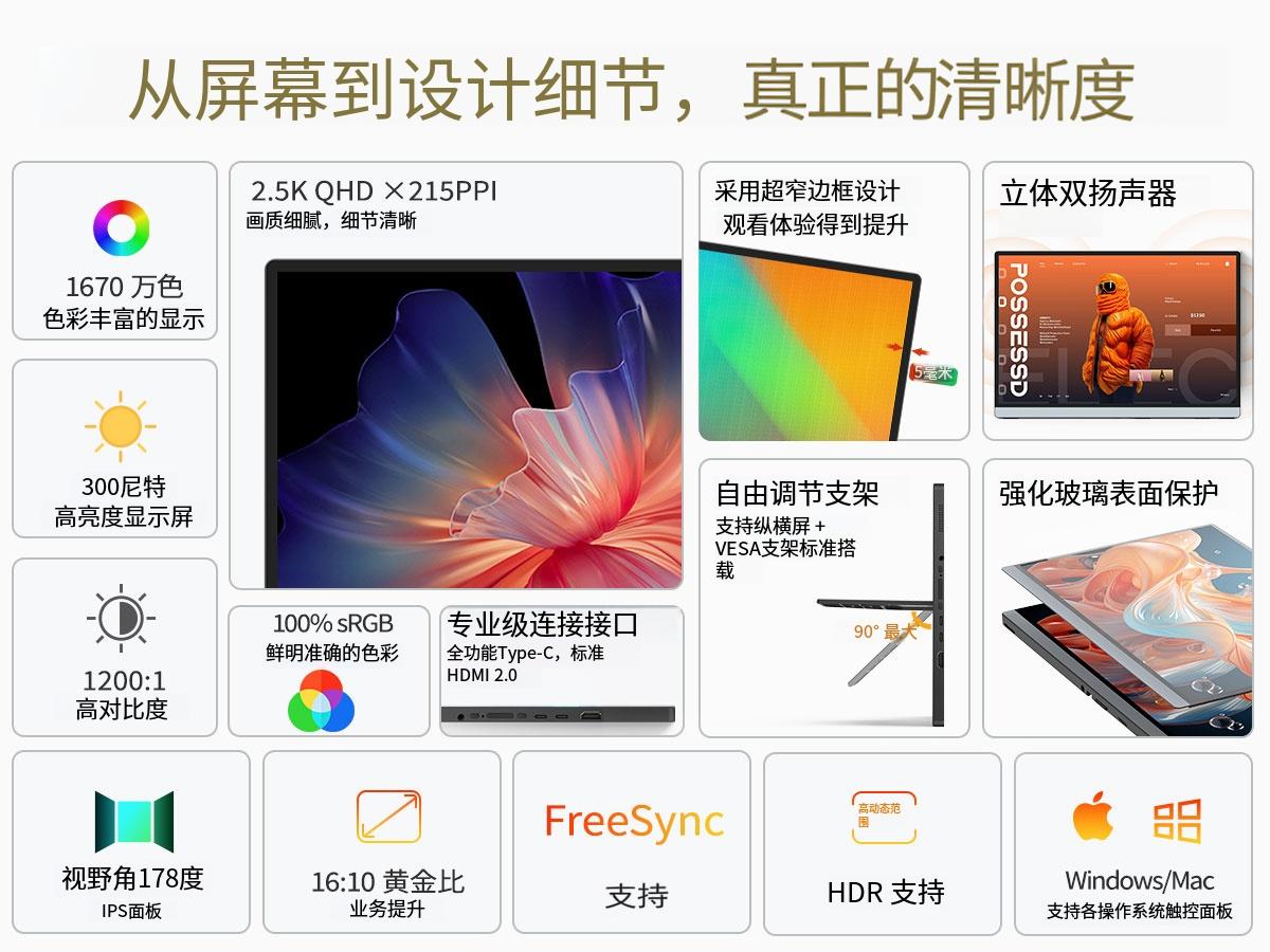 描述:带内嵌式隐藏支架 支持横竖屏支撑显示 全贴合钢化表面 十点触控